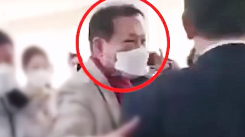 윤 후보의 어깨에 손을 올리고 툭툭 치는 남성.