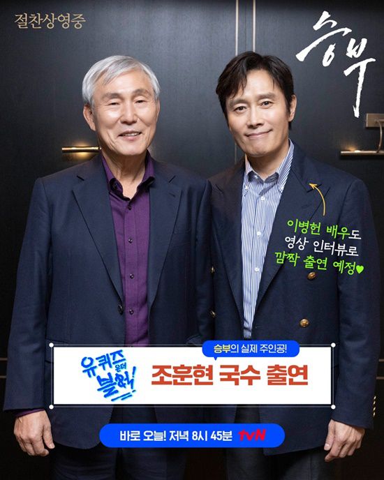 조훈현 국수는 이날 '유퀴즈'에서 유재석, 조세호와 함께 자신이 쌓아 온 바둑의 역사에 대한 이야기, 이창호 국수와의 역사적인 사제지간 대결의 비하인드, 그리고 영화 '승부'에 대한 이야기까지 다양한 이야기를 나눌 것이다. 여기에 영화 '승부'에서 조훈현 역을 맡은 이병헌 또한 영화와 조훈현 국수에 대한 영상 인터뷰로 깜짝 등장, 방송에 깊이 있는 재미를 더할 것이다.