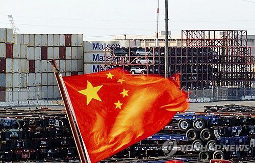 15일 미국 캘리포니아주 오클랜드 항구에 정박한 배에 중국 국기가 걸려있다. [AP 연합뉴스. 재판매 및 DB 금지] |