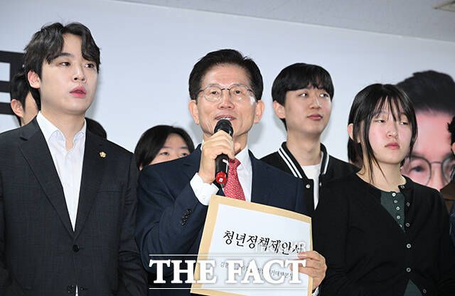 엄태영·박수영·김선교·인요한 국민의힘 의원이 16일 김문수 국민의힘 경선 예비후보 캠프에 합류했다. 사진은 김 후보가 지난 15일 오전 서울 여의도 김문수 승리캠프에서 열린 '청년대학생 김문수 지지 기자회견'에 참석해 발언하고 있는 모습. /박헌우 기자