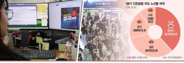 지난해 11월부터 중국이 우리나라 국민을 대상으로 비자 면제 정책을 시행하면서 올 1분기 인천국제공항발 중국행 여객이 전년 동기 대비 24% 증가했다. 다음 달 3일부터 시작되는 황금연휴에는 하루 평균 21만 명이 인천공항을 찾을 것으로 예상된다.