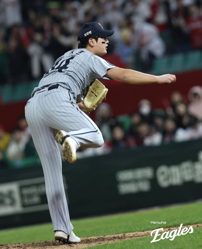 (엑스포츠뉴스 인천, 조은혜 기자) 한화 이글스의 김서현이 11경기 연속 무실점으로 호투 행진을 이어가고 있다. 마무리 보직을 맡으며 등판 상황이 매번 타이트해졌다는 걸 감안하면 더 대단한 기록이다. 입단과 동시에 우여곡절을 겪었던 '전체 1순위' 영건이 새로운 자리에서 빛을 발하고 있다.