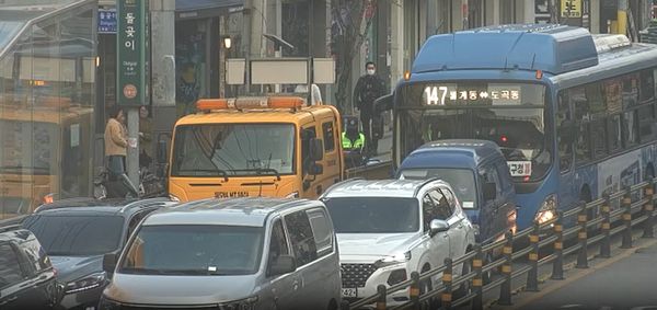 이에 따라 돌곶이로 석관동 새마을금고에서 돌곶이역 방향 일부 차로가 통제 중이다.