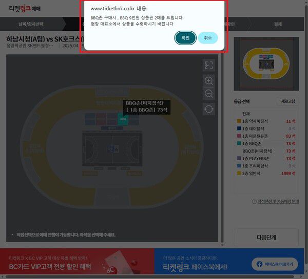 그렇다. 경기 취재 중 알게된 신박한 정보다. 올림픽 핸드볼 경기장에는 bbq존(좌석)을 운영 중인데, bbq존 티켓을 구매하면 티켓 1매당 'bbq치킨 쿠폰 9천 원권 2매'를 증정하고 있었다.