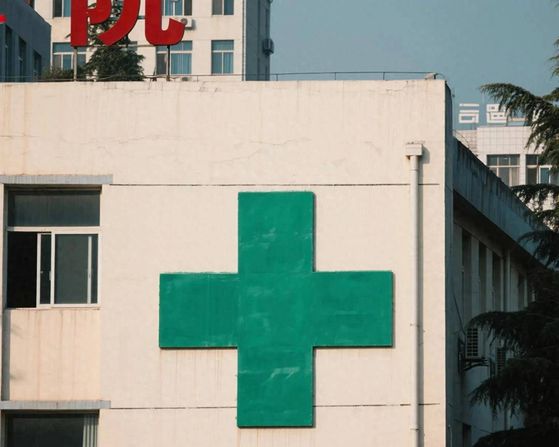 산허시 당국의 지침에 따라 병원의 적십자로고를 녹색으로 변경했다. 바이두캡쳐 |