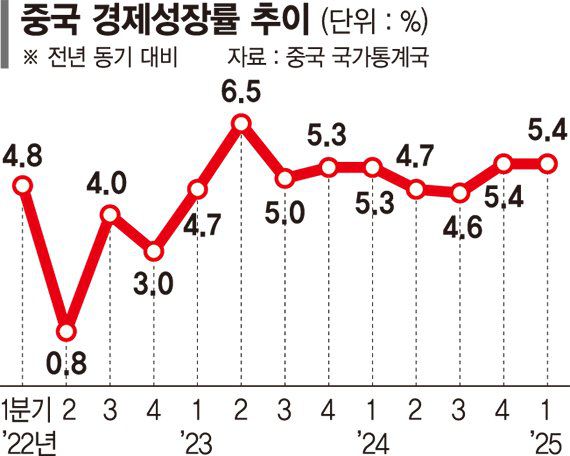 중국이 올해 1·4분기 5.4%의 경제성장률을 달성했다. 미국의 관세폭탄 속에서도 시장 예상치보다 높은 견고한 성장세를 보였다.