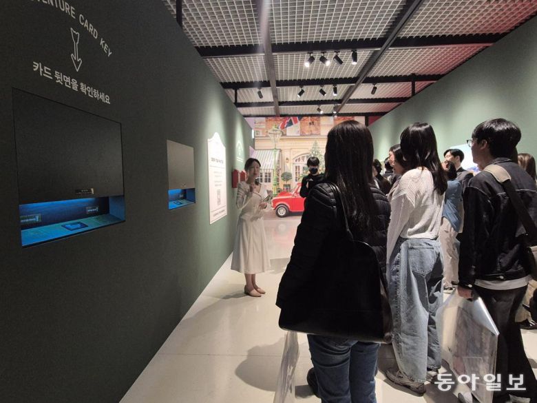 11일 서울 중구에 위치한 그라운드 시소 그랜드센트럴에서 KT ‘프라이빗 도슨트 투어’에 참가한 멤버십 고객들이 도슨트의 설명을 듣고 있다. 남혜정 기자 namduck2@donga.com |