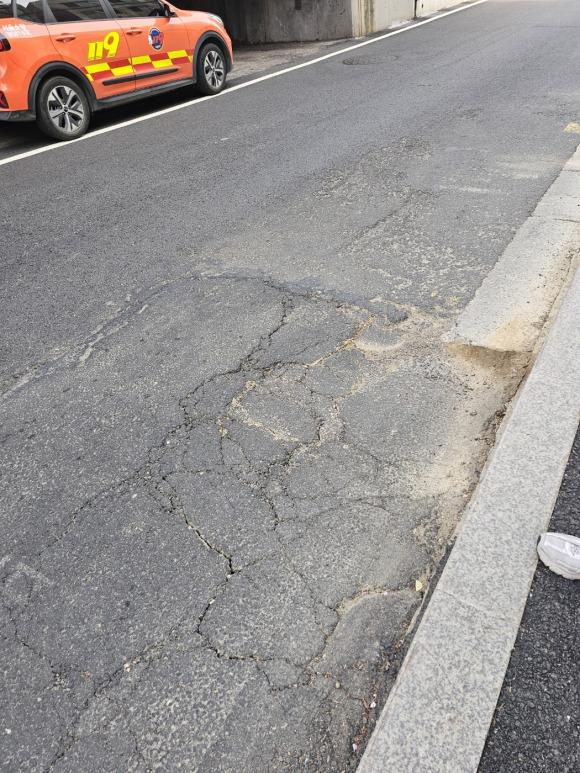 다만 현장에선 임시 보강 공사를 진행하고 있다. 이를 위해 일부 도로의 교통을 통제하고 있다.