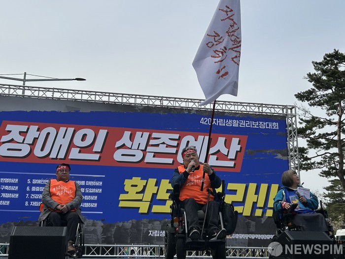 장애인 당사자 단체 '한국장애인자립생활센터총연합회'(한자연)가 '제 45회 장애인의 날'을 맞이해 서울 여의도 9호선 국회의사당역 앞 도로에서 '420자립생활권리보장대회'를 16일 오후 2시에 열었다.