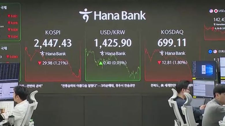 오늘(17일) 코스피는 전 거래일보다 1.21% 내린 2,447.43로 마감했습니다.