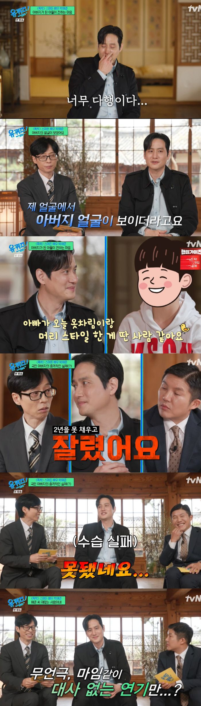 16일 방송한 tvN '유 퀴즈 온 더 블럭'에서는 배우 박해준이 박보검을 닮은 듯한 잘생긴 아들 둘과 출연해 솔직한 자신의 이야기를 전했다.