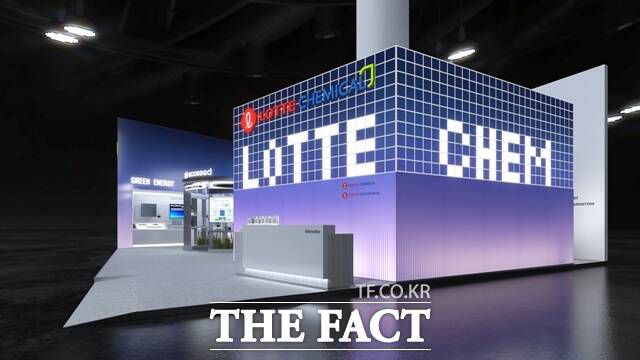 롯데케미칼은 '미래로 향하는 여정'을 주제로 고부가 스페셜티 소재 기술력을 강조하고 지속 가능한 자원선순환 해결책을 제시한다.