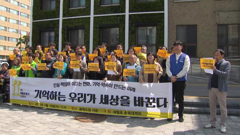세월호 참사 11주기를 맞아 세월호 충북대책위는 오늘(16일) 충북도청 서문에서 기자회견을 열고, 참사의 진상규명과 책임자 처벌을 촉구했습니다.