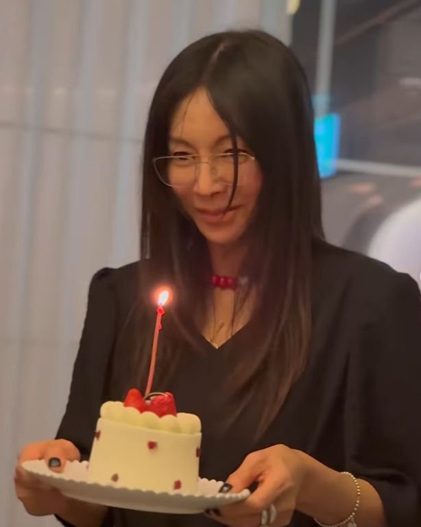 공개된 사진 속 황신혜는 올 블랙의 롱 원피스를 입은 채 우아한 분위기를 자랑하고 있으며, 양손으로 케이크를 들고 있다. 그는 얇은 테의 안경과 블랙 네일로 포인트를 더했다.