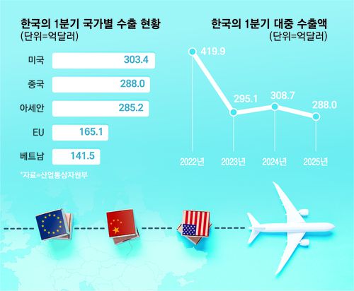 반면 수출에서 미국이 차지하는 비중은 2021년 12%에서 지난해 18.3%로 올랐고, 올해 1분기에는 19.0%까지 치솟았다.