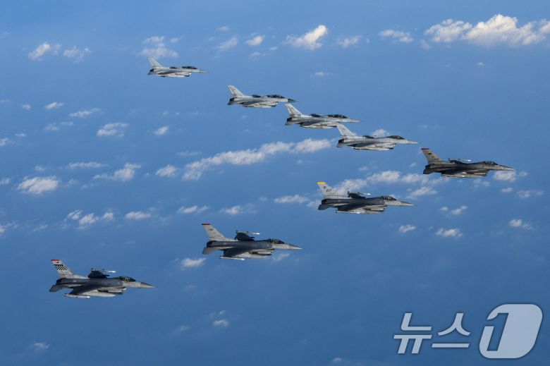 한미 공군 전투기의 연합편대군 훈련 모습.  (합동참모본부 제공) 2024.10.31/뉴스1
