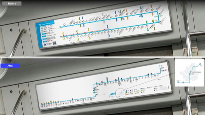 새로운 노선도는 서울 교통공사와 협의한 뒤 하반기부터 순차적으로 부착할 예정인데 가로형과 세로형, 안내문 부착형 3가지입니다.