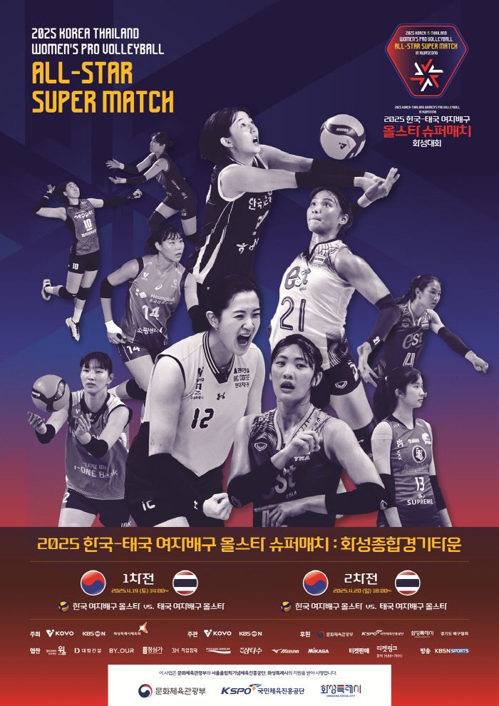 오는 19일과 20일 이틀간 화성 종합경기타운에서 2025 한국·태국 여자배구 올스타 슈퍼매치가 열린다. 이번 친선 대회는 한국과 태국 여자배구 올스타들 간에 맞대결 뿐만 아니라 다양한 문화공연과 야외 플리마켓 운영으로 팬들이 즐길 수 있는 먹거리와 즐길거리가 준비돼 있다.