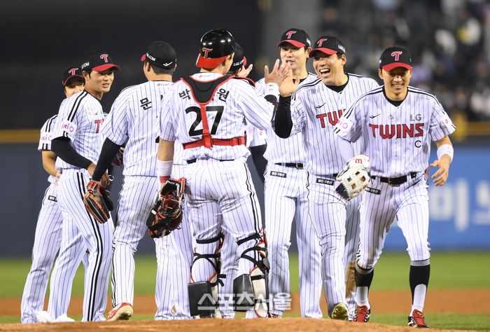 LG 선수들이 15일 잠실구장에서 열린 2025 KBO리그 삼성과 경기 승리 후 하이파이브를 하며 승리를 자축하고 있다. 잠실 | 최승섭기자 thunder@sportsseoul.com |