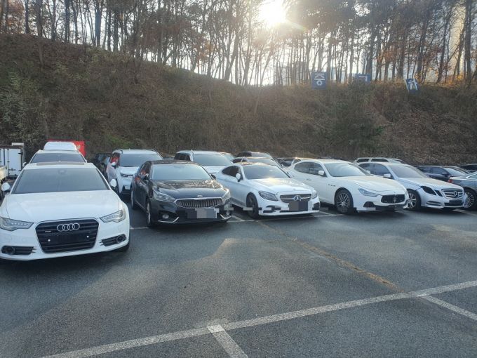 경찰이 압수한 불법 대포차량들이 위탁 장소에 보관되고 있다. /사진= 서울경찰청 광역수사단 마약범죄수사대 제공. |