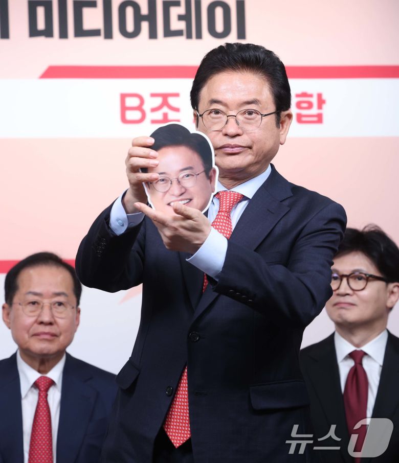 (서울=뉴스1) 국회사진취재단 = 제21대 대통령후보자 국민의힘 1차 경선 토론회 미디어데이가 17일 오전 서울 영등포구 여의도 중앙당사에서 열렸다. 경선 후보인 이철우 경북도지사가 얼굴 사진을 들어 보이고 있다. 2025.4.17/뉴스12expulsion@news1.krCopyright ⓒ 뉴스1. All rights reserved. 무단 전재 및 재배포, AI학습 이용 금지.이 기사의 카테고리는 언론사의 분류를 따릅니다.0공유하기