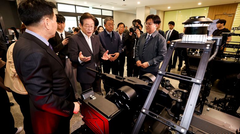 ▲ 더불어민주당 대선후보 경선 주자인 이재명 전 대표가 17일 대전광역시 유성구 국방과학연구소(ADD)에서 AI 기반 무인체계 연구개발 현장을 둘러보고 있다.