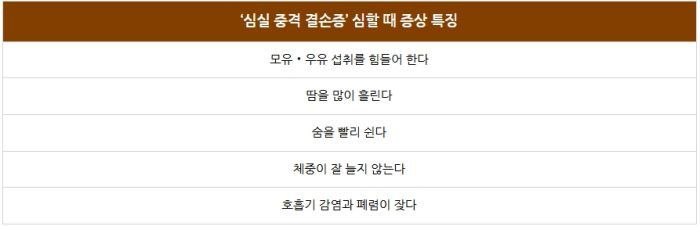 김우식 교수는 "숨이 차서 모유‧우유를 먹을 때 힘들어할 수 있고, 땀을 많이 흘리거나 숨을 빨리 쉬기도 한다"며 "아울러 체중이 잘 늘지 않고, 잦은 호흡기 감염과 폐렴 등의 합병증을 겪는 것도 특징"이라고 말했습니다.