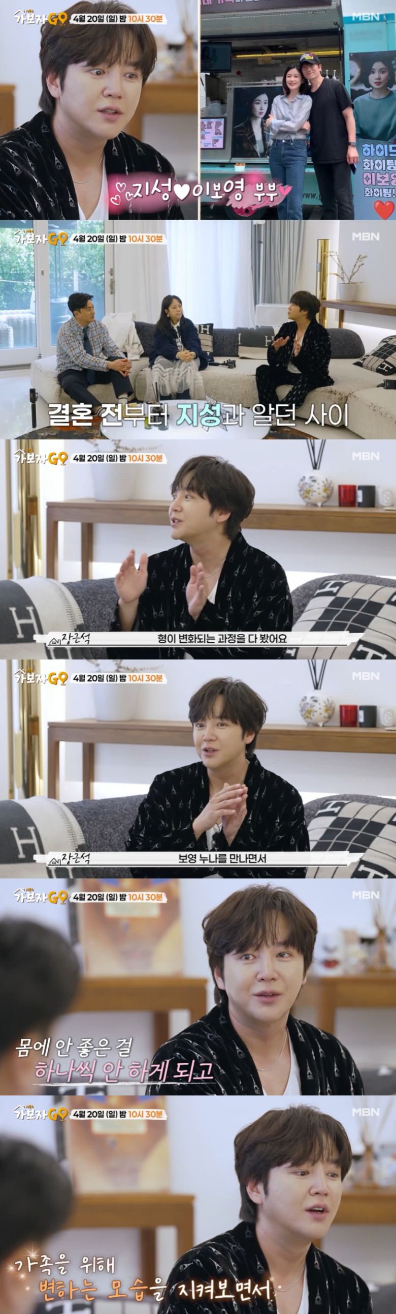 이에 장근석은 "지성 형과 이보영 누나 부부가 제 이상형이다"라며 "전 (지성을)결혼 전부터 알았다. 사실 형이 변화되는 과정을 다 봤다. (이보영) 누나를 만나면서 몸에 안 좋은 걸 다 하나씩 정리하고 안 하더라. 자기를 소중하게 생각하는 게 결국 가족을 생각하는 거다"라고 이야기했다.