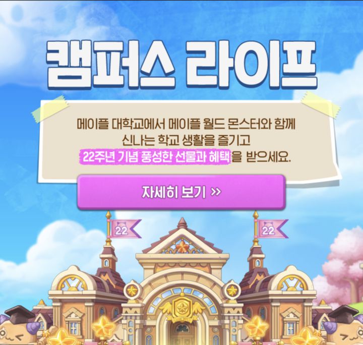 넥슨이 17일, 자사 인기 온라인게임 '메이플스토리'의 서비스 22주년을 기념해 '메이플 대학교' 게임 이벤트를 시작했다고 전했다.