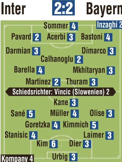 독일 매체 '키커'는 경기 후 김민재에 평점 5점으로 '혹평'을 내렸다. 여기 더 냉정한 평가도 있다. 독일 유력지 '빌트'는 김민재에게 거의 '빵점' 수준인 6점을 부여했다. 이는 인터 밀란전 선발 출전한 뮌헨 선수 중 가장 나쁜 점수였다.