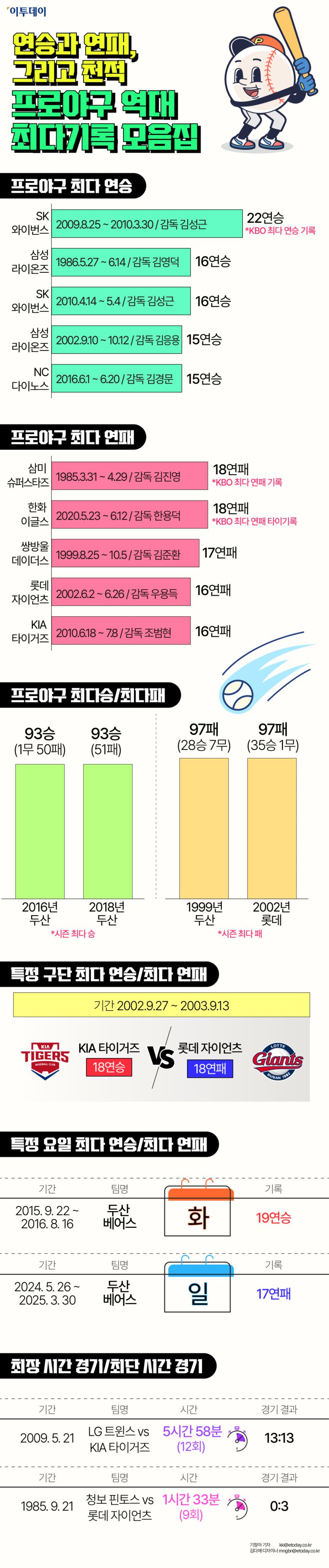 [그래픽 스토리] 연승과 연패, 그리고 천적…프로야구 역대 최다기록 모음집