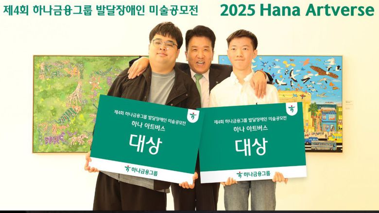 하나금융그룹이 제45회 장애인의 날을 기념해 17일 하나은행 본점에서 발달장애 예술가들과 함께하는 미술 공모전 '제4회 하나 아트버스' 시상식을 열었습니다.