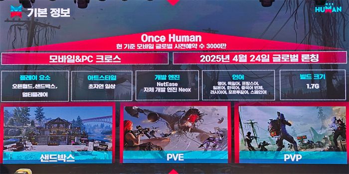 <원스 휴먼 모바일>은 현재 사전 예약을 진행 중이며 오는 4월 24일에 정식 출시된다. 쉬엔보 수석 게임 디자이너는 “한국 시장을 특히 중요하게 지켜보고 있으며, 이번 모바일 버전도 한국 유저들에게 좋은 경험이 되길 바란다”라는 말을 전했다.