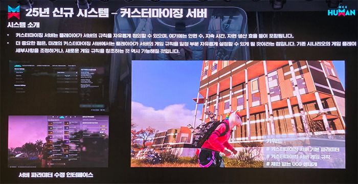 크로스 플레이를 지원하는 만큼 업데이트도 동일하게 반영된다. 특히 2025년에는 더욱 흥미로운 신규 시나리오와 콘텐츠 외에도 한층 자유롭게 플레이할 수 있는 ‘커스터마이징 서버’를 선보일 계획이다. 커스터마이징 서버에서는 플레이어가 서버의 규칙을 설정하고 다양한 놀거리를 만드는 것 외에도 기존 시나리오의 플레이 경험을 세부적으로 조정하거나 아예 새로운 규칙을 만들어내는 일도 가능하다.