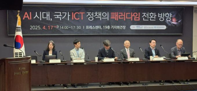 정보통신정책학회·한국통신학회·한국경영과학회가 17일 서울 중구 한국프레스센터에서 개최한 'AI 시대, 국가 ICT 정책의 패러다임 전환방향' 정책토론회에선 이 같은 의견들이 쏟아졌다. AI와 세계질서 재편에 대응해 국가 경쟁력을 확보하기 위해 제도 전반을 손봐야 한다는 진단이다.