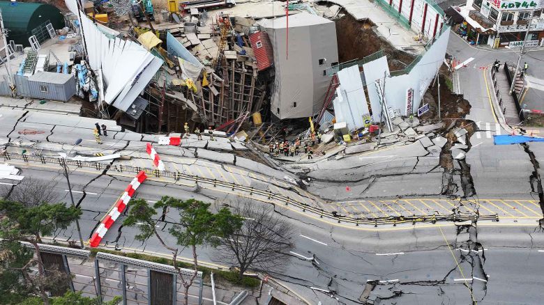 지하로 30m 넘게 뚫린 구멍 주변은 공사 잔해물들로 처참한 모습입니다.