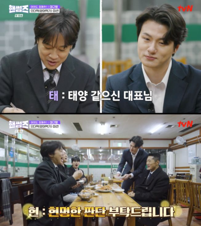 17일 방송된 tvN '핸썸가이즈'에서는 차태현, 김동현, 이이경, 신승호, 오상욱이 여의도에 정장을 입고 나타난 모습이 그려졌다. 이들은 직장인들이 가장 많이 하는 고민으로 '오늘 뭐 먹지'를 꼽고는 점심 메뉴 탐방에 나섰다.
