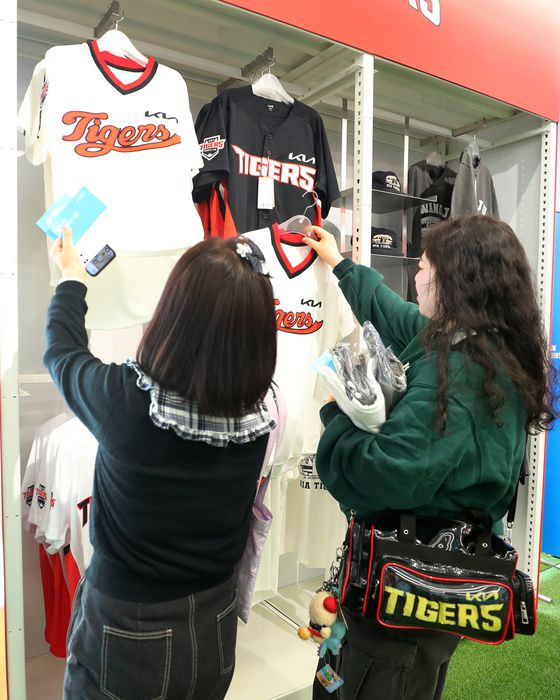 17일 오후 서울 성동구 무신사 스퀘어 성수4에서 열린 ‘KBO 팬 페스타 팝업스토어’에서 방문객들이 유니폼·모자 등 구단별 인기 상품을 둘러보고 있다. 한국야구위원회(KBO)와 무신사가 협업해 마련한 이번 행사는 오는 20일까지 열린다. [뉴시스]