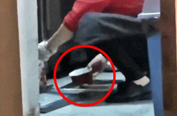 공개된 영상에 따르면 문제의 직원은 식당에서 사용하는 밥그릇으로 하수구에서 오물을 건져내 쓰레기봉투에 담았다.