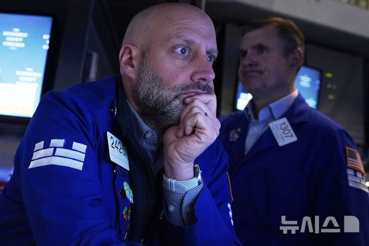 [뉴욕=AP/뉴시스]17일(현지 시간) 뉴욕증권거래소(NYSE)에서 트레이더들이 일하고 있다. 2025.04.18. |