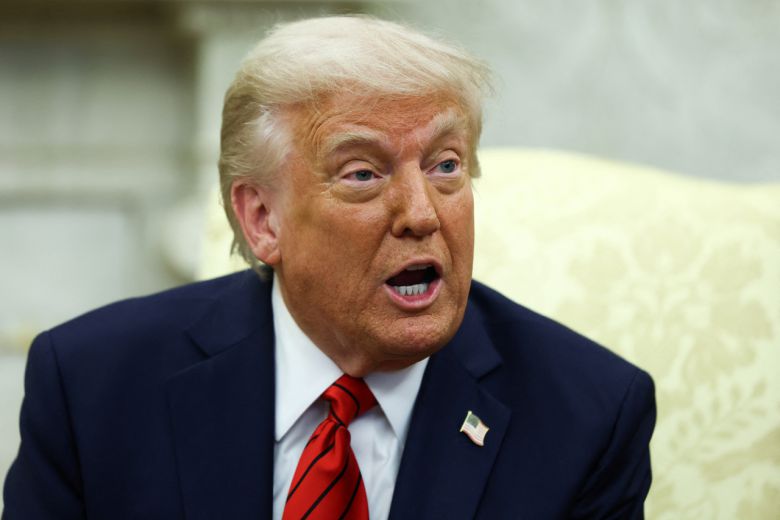 도널드 트럼프 미국 대통령이 17일(현지시간) 워싱턴DC 백악관 집무실에서 연설하고 있다.  [로이터]