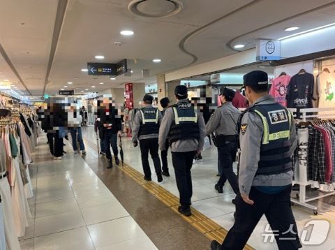 서울경찰청 기동순찰대가 강남역 지하상가 일대를 순찰 중인 모습. 2025.04.17/뉴스1