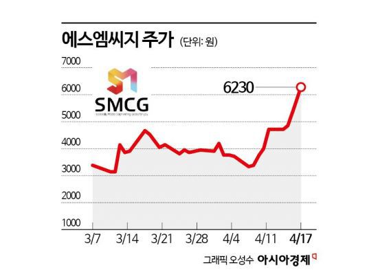 18일 금융투자업계에 따르면 에스엠씨지 주가는 이달 들어 58.9% 올랐다. 같은 기간 코스닥 지수가 5.8% 오른 것을 고려해도 시장 대비 수익률은 53.1%포인트에 달한다. 개인 투자자가 지난 1일부터 17일까지 21억원 누적 순매수를 기록하며 주가 상승을 이끌었다. 개인 투자자 평균 매수가는 4669원으로 전날 종가 6230원을 기준으로 평가수익률 33.4%를 기록 중이다.