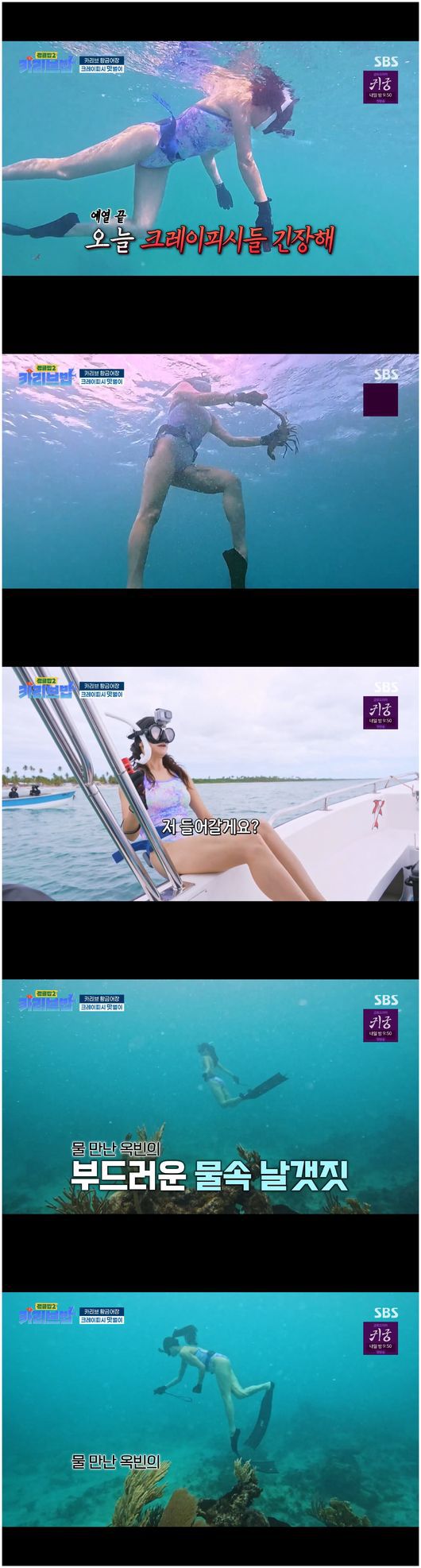 김옥빈은 “현지에서 한다면, 다이빙만 할 수 있으면, 어이든 들어갈 수 있다”라고 말했다. 제작진은 “25m 정도도 들어갈 수 있다. 깊다”라며 김옥빈을 걱정했으나, 김옥빈은 “그 정도면 맨몸으로 들어갈 수 있다”라면서 크레이피시를 3마리, 소라 1개를 거뜬히 잡아 올려 모두를 깜짝 놀라게 했다.