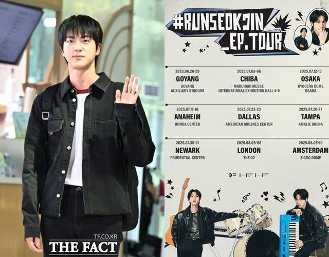 진은 18일 글로벌 팬 플랫폼 위버스(Weverse)에 '#RUNSEOKJIN_EP TOUR(런석진 이피 투어)' 포스터를 공개하며 팬콘서트 투어 개최 소식을 알렸다. 포스터에는 다양한 악기에 둘러싸여 록스타로 완벽 변신한 진의 모습이 담겼다.