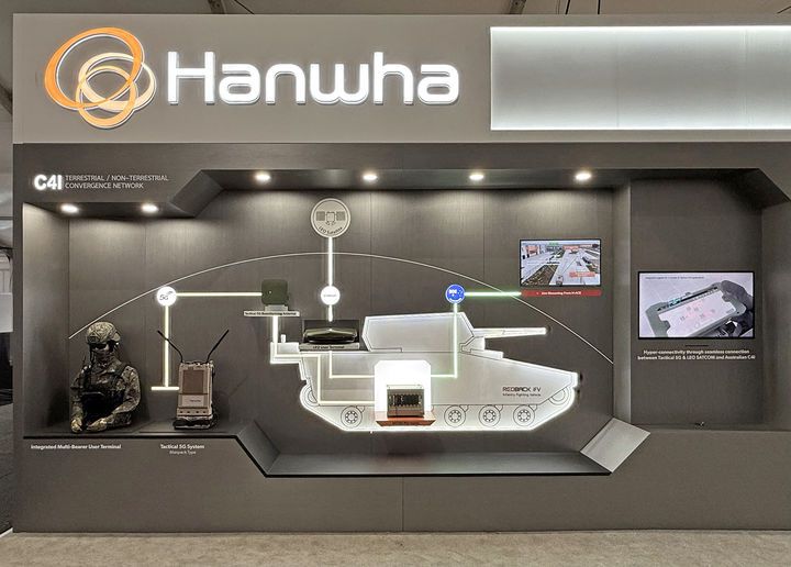 [서울=뉴시스] 김진아 기자 = 한화시스템과 한화에어로스페이스가 오는 30일까지 호주 질롱 아발론 공항에서 열리는 '아발론 에어쇼 2025'에 참가한다고 25일 밝혔다. 사진은 '아발론 에어쇼 2025'에 참가한 한화시스템 부스. (사진=한화시스템 제공) 2025.03.25. photo@newsis.com *재판매 및 DB 금지