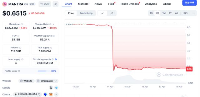 존 패트릭 멀린 만트라 최고경영자(CEO)는 15일 디센터와 진행한 인터뷰에서 담담한 표정으로 발언을 이어갔다. OM은 14일 새벽 1시께 6달러 선에서 거래되다 약 3시간 만에 93% 급락해 0.43달러까지 추락했다. 16일 오전 8시 기준 OM은 0.64달러 선에서 거래되고 있다. 전체 가상자산 시가총액 20위권에 머물던 프로젝트가 며칠 만에 82위로 밀려난 사례는 2022년 테라, 루나 사태 이후 처음이다. 일각에서는 만트라 러그폴(rug pull·양탄자를 당겨 사람을 쓰러트리는 행위처럼 프로젝트 개발자가 프로젝트를 돌연 중단해 투자금을 가로채는 투자 회수 사기) 논란까지 번지며 의혹이 확산되고 있다.