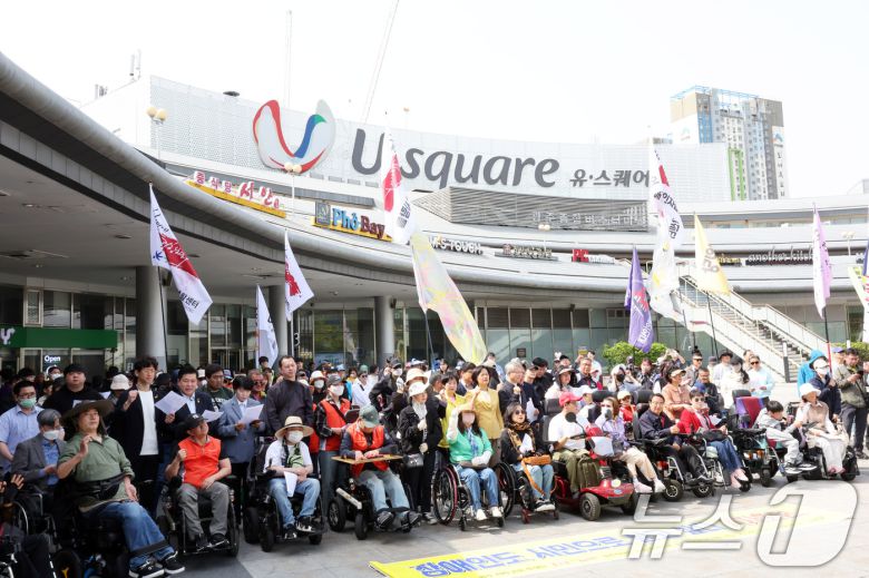 (광주=뉴스1) 박지현 기자 = 장애인의 날을 이틀 앞둔 18일 광주 서구 광천동에서 장애인 차별 철폐연대 활동가들이 장애인 권리 확대를 촉구하는 기자회견을 하고 있다. 2025.4.18/뉴스1warm@news1.krCopyright ⓒ 뉴스1. All rights reserved. 무단 전재 및 재배포, AI학습 이용 금지.이 기사의 카테고리는 언론사의 분류를 따릅니다.0공유하기
