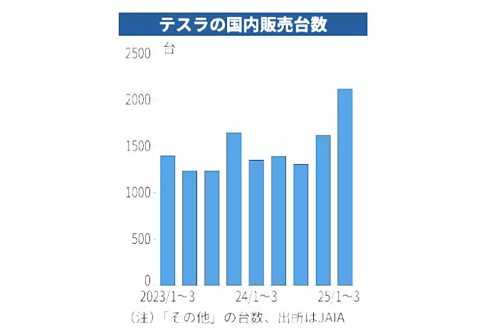 미국과 유럽에서 ‘친(親)트럼프’ 역풍을 맞은 테슬라가 일본에서 선전하고 있다. 18일 니혼게이자이신문(닛케이)에 따르면 올해 1~3월 일본 내 전기차 판매에서 일본 기업들의 판매는 침체되는 반면 테슬라의 경우 1년 전보다 56% 급증하면서 역대 최고 판매량을 기록했다.