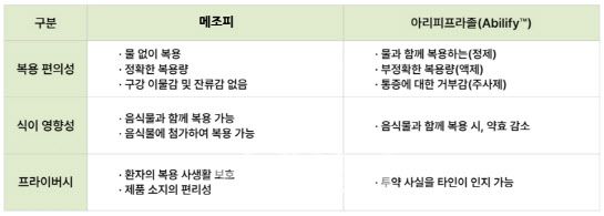 메조피와 다른 아리피프라졸 의약품 비교 (자료=차바이오그룹) |